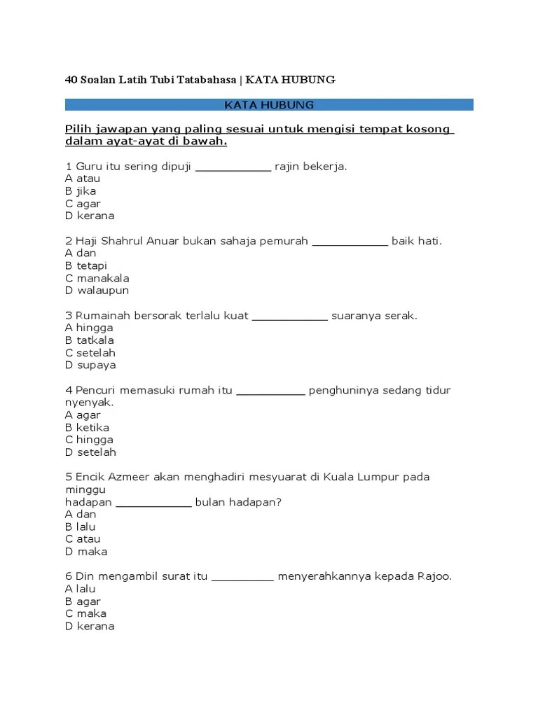 60 soalan latih tubi tatabahasa kata hubung malay language grammar and vocabulary tutoring business.